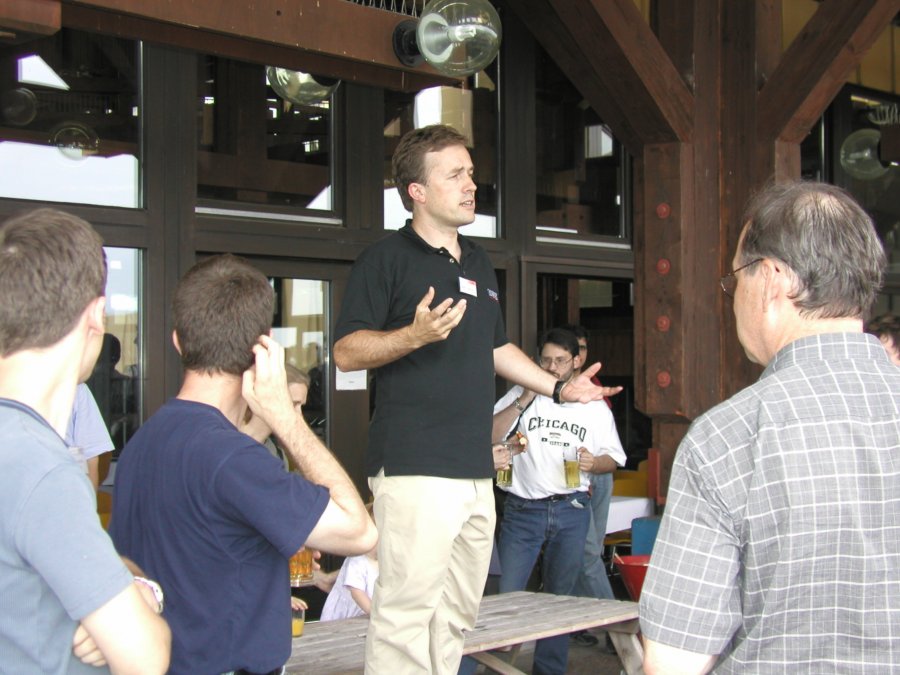 Everyone posing with their beer. (Note that my beer