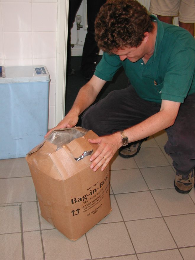 Alan had bought a famous "Bag-in-Box" beer bomb, which