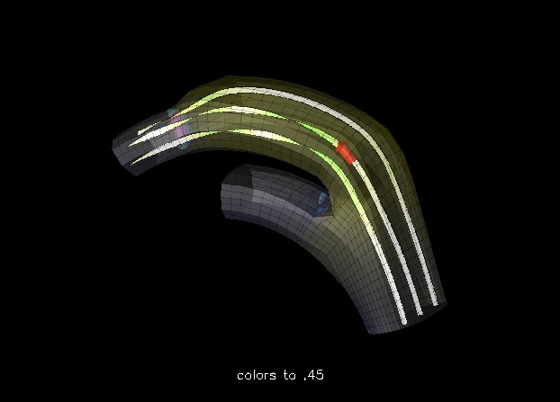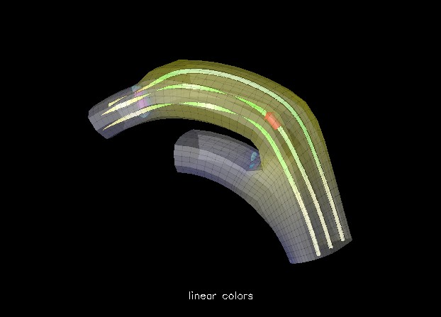 Figure 1 shows a standard rendering of a duct flow visualization using IBM's Data Explorer (DX). The visibility of lines inside and outside the translucent surface representing the duct is very important to the client, and even subtle changes in the colors can render certain aspects of this visualization invisible, defeating the purpose.